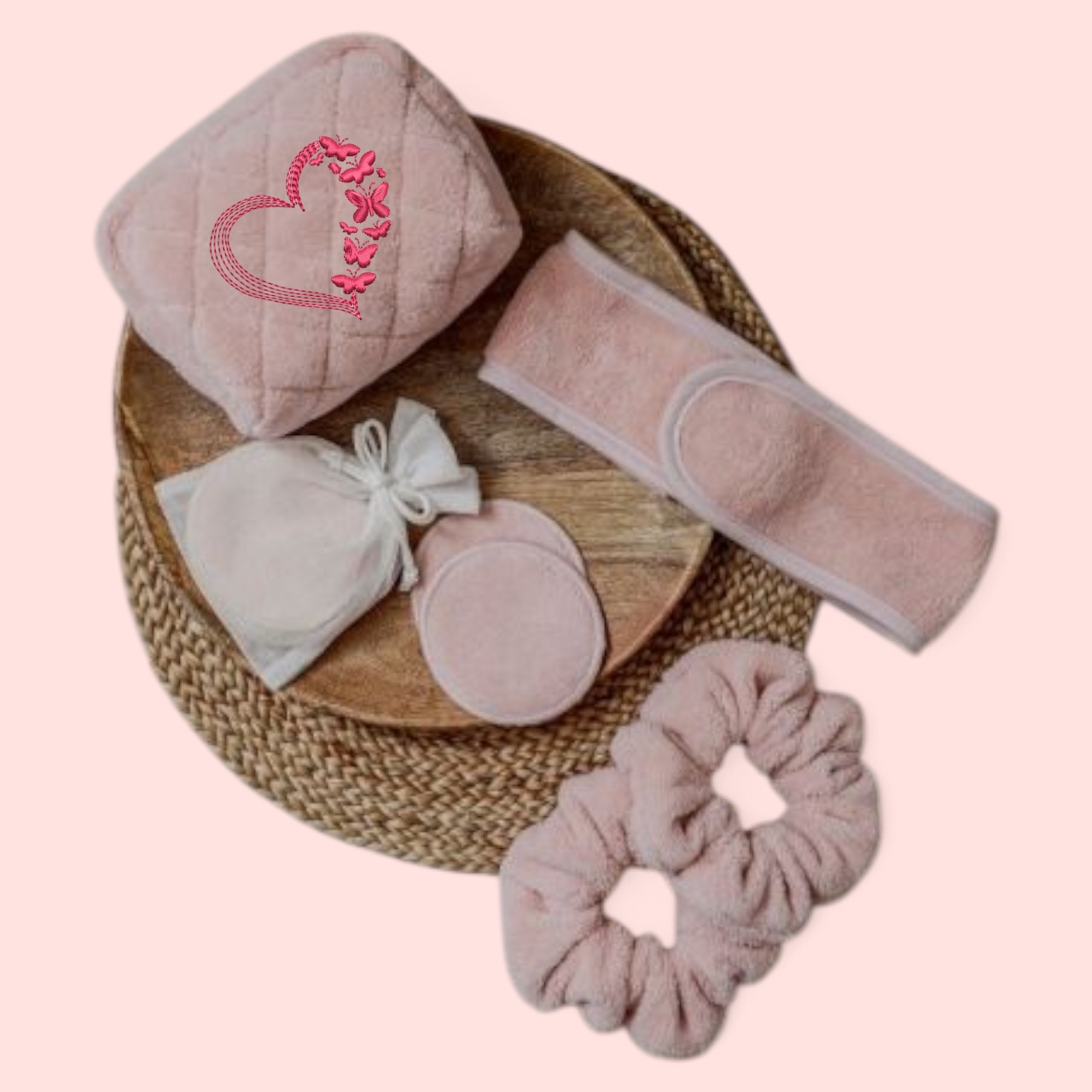 Das Set umfasst zwei Scrunchies, ein Spa-Stirnband und sieben wiederverwendbare Reinigungspads. Die Scrunchies sind vielseitig einsetzbar – sowohl als Haargummi als auch als Gesichtswasch-Armband, um lästige Haarsträhnen während der Reinigung zurückzuhalten. Das Stirnband sorgt für einen bequemen Sitz und hält die Haare zuverlässig aus dem Gesicht. Die weichen Reinigungspads nehmen überschüssiges Make-up und Pflegeprodukte besonders sanft auf und sind wiederverwendbar, um die Umwelt zu schonen.