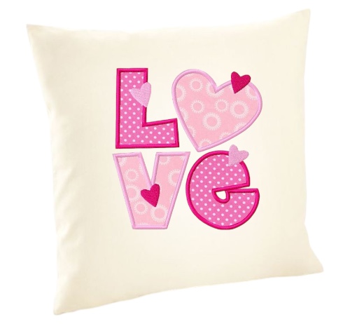 Das Kissen kann mit einem bestickten Herz- oder Love-Motiv sowie mit großen Initialen personalisiert werden, um eine besondere Note zu verleihen. Dank des verdeckten Reißverschlusses bleibt das Design harmonisch und elegant.